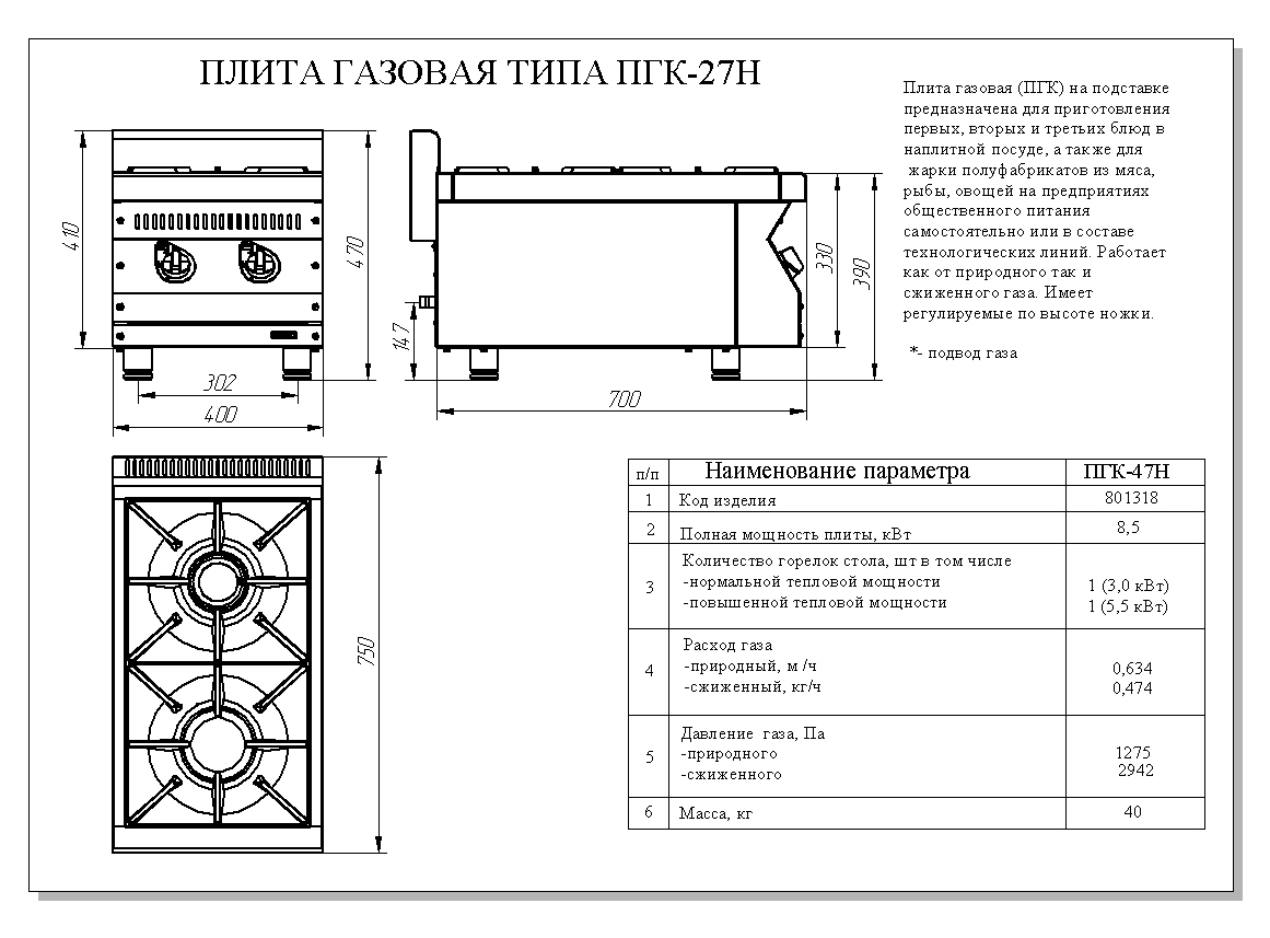 Газовая плита Abat ПГК-27Н предназначена для приготовления различных блюд в наплитной посуде на предприятиях общественного питания и торговли. Модель оснащена регулируемыми по высоте ножками.